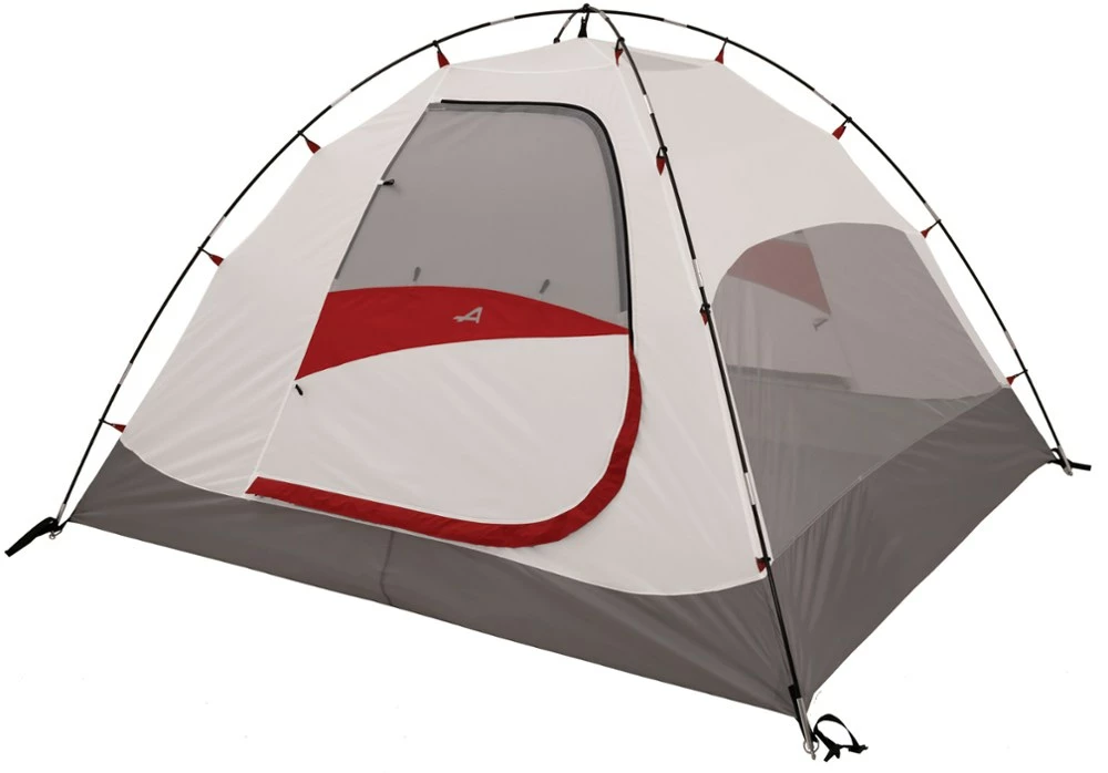 - Weatherproof rainfly with a ridge pole provides an awning over each door