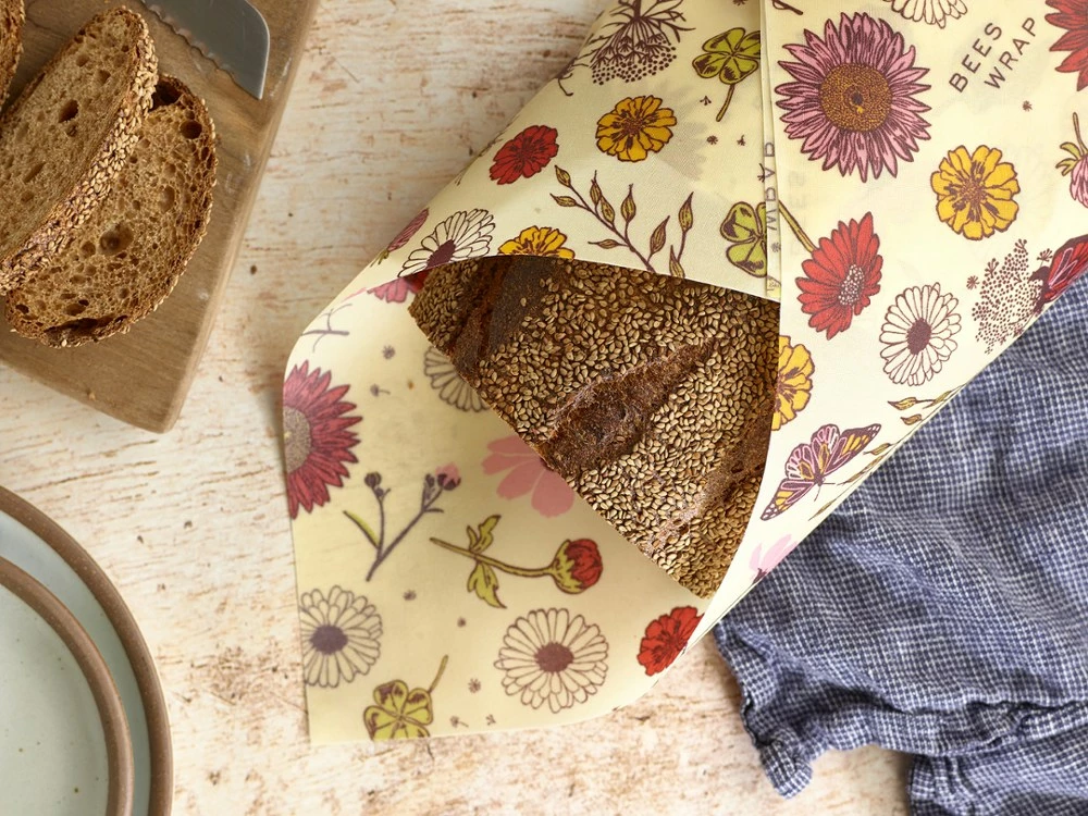 A healthy and reusable way to store food, this set of 7 Bee’s Wrap assorted plant-based wraps substitutes candelilla wax for beeswax to offer a vegan-friendly alternative to plastic wraps.