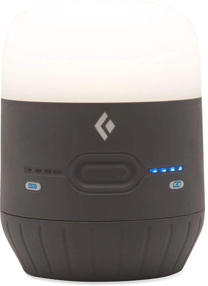 An ultrabright basecamp lantern with a 3-way power source, the Moji charging station/lantern also acts as portable power, and charges handheld electronics via USB.