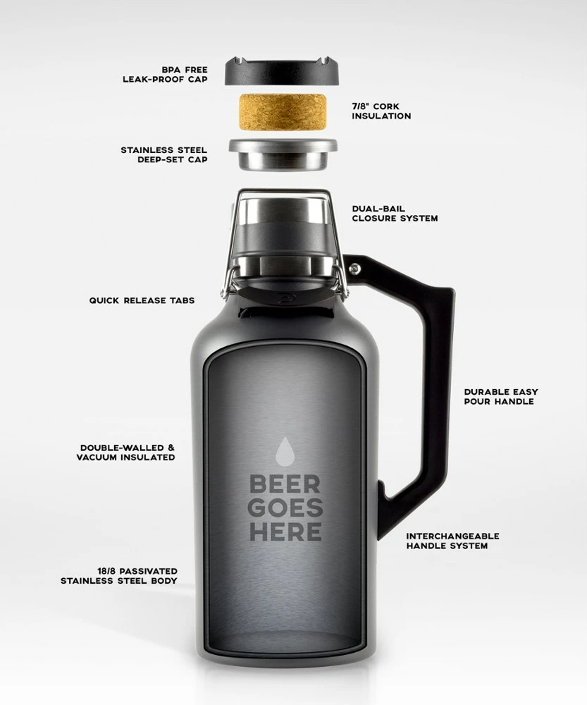 A durable beer vessel with 18/8 stainless-steel double-wall insulation, the 64 fl. oz. DrinkTanks Insulated Growler helps ensure your beer stays as cold and fresh as the moment you filled it.