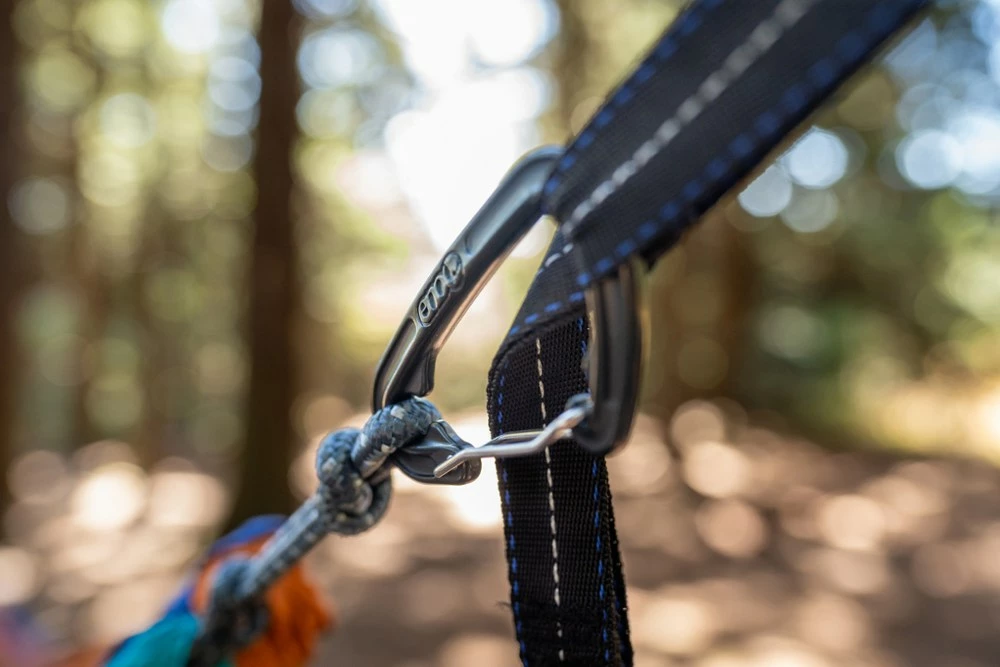 - Specially designed carabiners easily attach to all ENO hammock straps or other secure anchor points and help maintain correct orientation for an easier hang