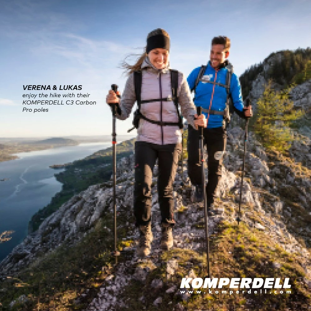 Less is more when it comes to weight, especially when hiking. Komperdell C3 Carbon Compact trekking poles are very lightweight yet incredibly stable, and they pack down to fit in your pack.