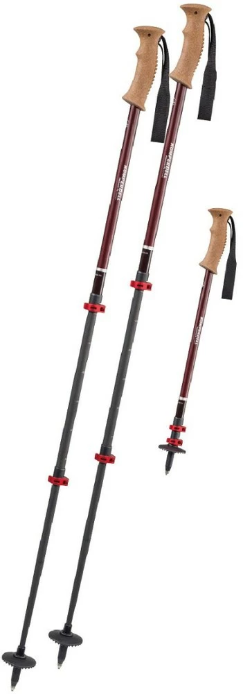 Robust, adjustable trekking poles with classic style, Komperdell Fieldmaster Powerlock Cork Compact trekking poles pack down small, making them ideal for short or long hikes or backpacking trips.
