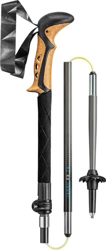 Designed specifically for women, the Leki Jannu FX TA trekking poles boast smaller grips, shorter straps and overall smaller dimensions. Plus, a push-button mechanism offers quick extension/collapse.