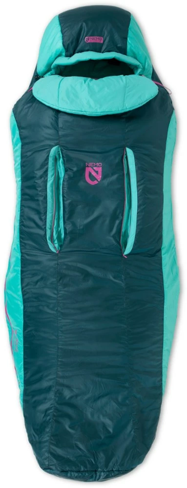Classic mummy-bag design isn’t ideal for the 70% of people who sleep on their side. The women’s NEMO Forte 35 sleeping bag adds room at the elbows and knees for 3-season, side-sleeping comfort.