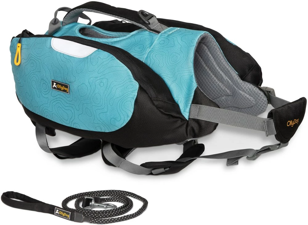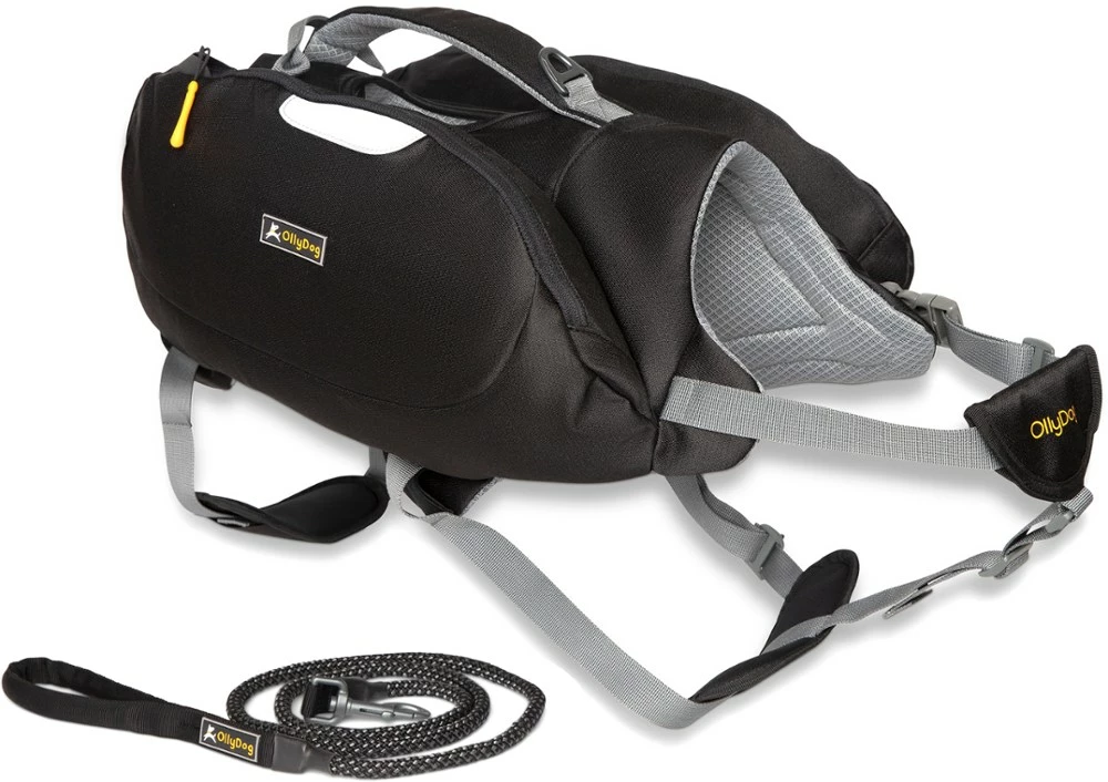 Let Rover carry his own gear. The OllyDog Rover Dog Pack bundle includes the Rover pack plus a Mountain leash, making it ideal for day hikes and overnight adventures where leashes are required.