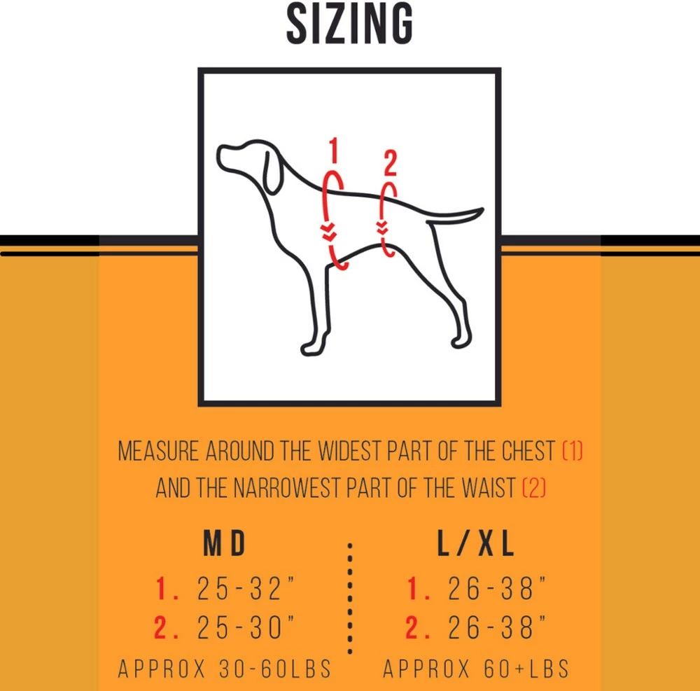 | Fits Chest | M: 25-32 inches L: 26-38 inches |