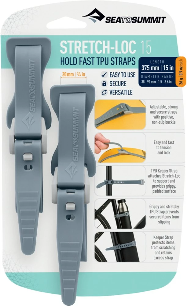 Adjustable, strong and secure straps with a positive, nonslip buckle, Sea to Summit 3/4 in. Stretch-Loc TPU straps can secure almost any item. They’re sure to become an integral part of your kit.