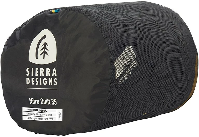 One part blanket, one part sleeping bag, all parts cozy. For mummy-bag naysayers and thru-hikers prioritizing sleep after a long day, the Sierra Designs Nitro Quilt 35 weighs in a scant 1 lb. 6 oz.